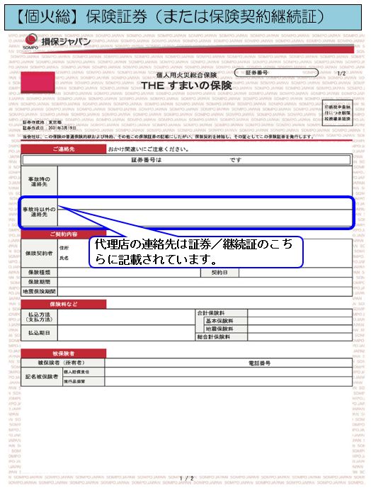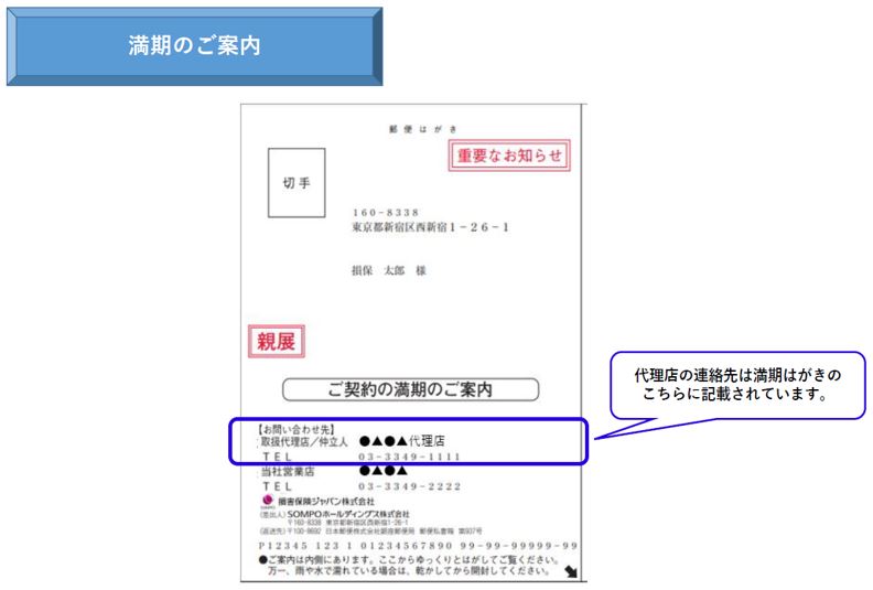 取扱代理店に連絡したいのですが、連絡先がわかりません。書類に記載されていますか?