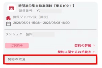 はい、取り消しできます。保険料は全額返金となります。 乗るピタ!専用手続きサイトから行ってください。 取り消しの手順は以下のとおりです。 1.マイページ画面、または成約画面より、ご契約内容の確認画面へ遷移し、 手続きしたい契約の「契約の取消」ボタンを押してください。 2.お申し込みの取消画面に遷移しますので、内容を確認いただき、「取消」を押してください。 3.取消完了画面が表示されましたら、手続き完了です。