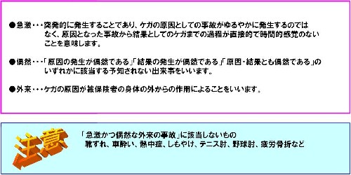 被保険者(保険の対象となる方)が日本国内または国外において、歩行中に石につまずいて転倒し打撲したなど、急激かつ偶然な外来の事故によってその身体に傷害を被った場合、お支払いの対象となります。