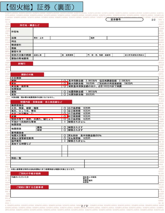 保険証券でご確認いただく場合は、以下サンプル画像の赤枠部分に〇がある場合に